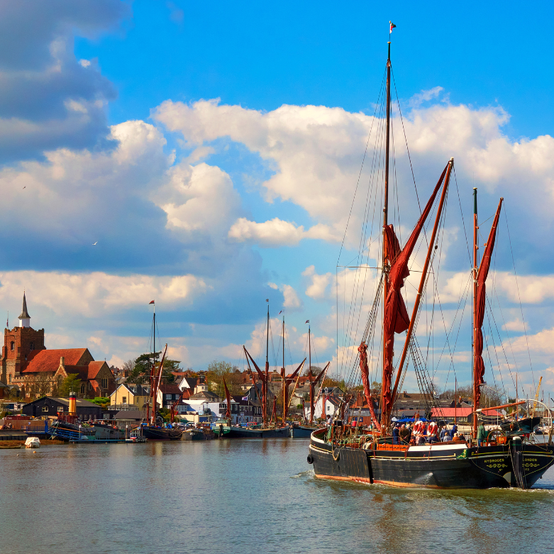 Maldon’s historic Hythe Quay is one of the best places in the county to spot historic Thames Sailing Barges, and you can also explore the Promenade Park and the historic High Street or enjoy a waterside meal. Hythe Quay is a five-minute walk via Church Street to the Quay from the Victoria Road stop on the First Essex services 31, 75, 331 and 332 . More info, please visit: https://www.visitmaldondistrict.co.uk/things-to-do/hythe-quay-p1405211