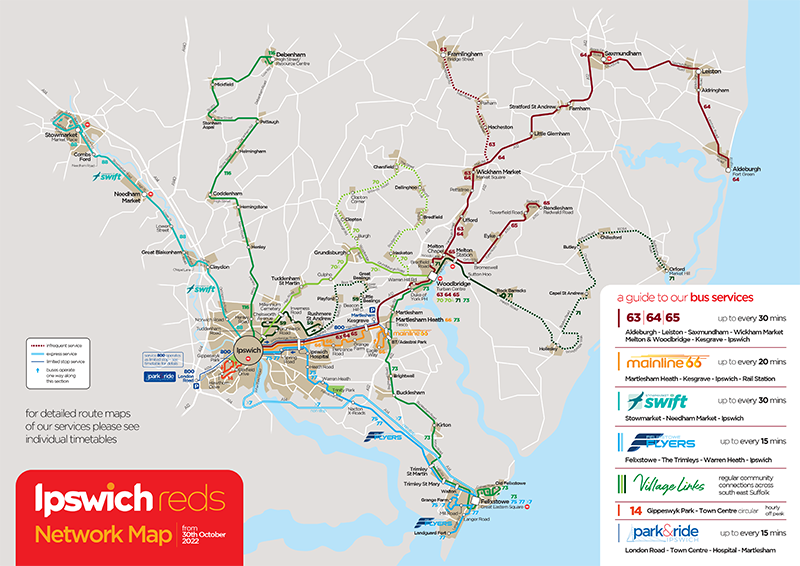 Ipswich Transport MuseumIpswich Transport Museum is a collection of over 100 major transport and engineering objects which were made or used in the Ipswich area. They show how people used to go about their daily lives and remind us of the many things that were actually designed and built on our doorstep. The Transport Collections are lovingly cared for by dedicated volunteers. Find out more: Ipswich Transport Museum Home Page Service:75, 77, 78, 79 |