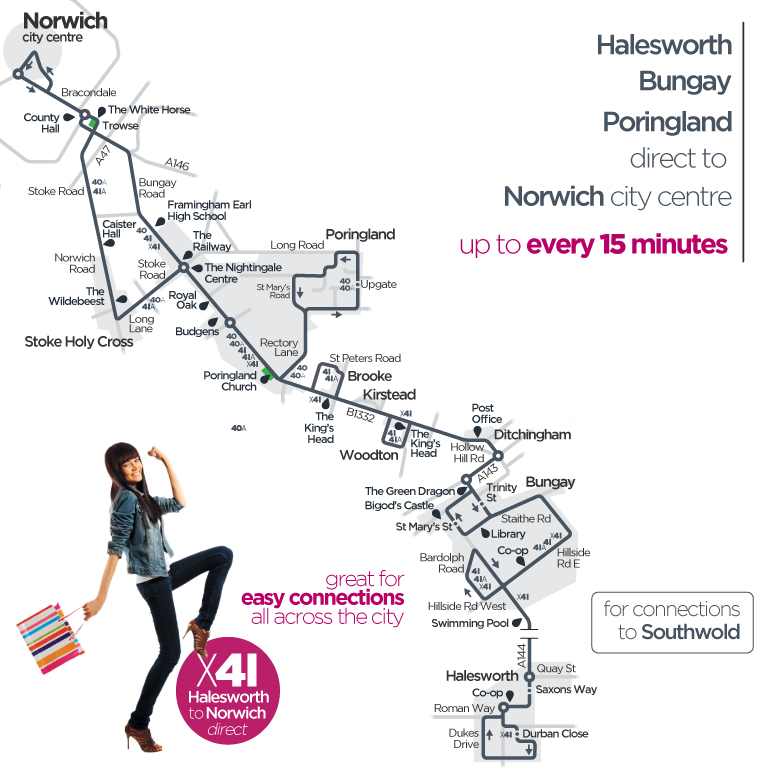 If you're changing to or from our Coastlink X1 & X11, X2|X21|X22 or excel A|B|C|D buses from Norwich Bus Station, then it's another easy switch from our stop St Stephens Street.