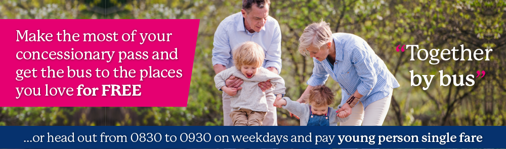 And if you need to get out and about earlier, then you can jump on board any of our buses, anytime between 0830 and 0930 on a weekday and buy a discounted single ticket. All you need to do is show your pass to the driver when you board the bus.