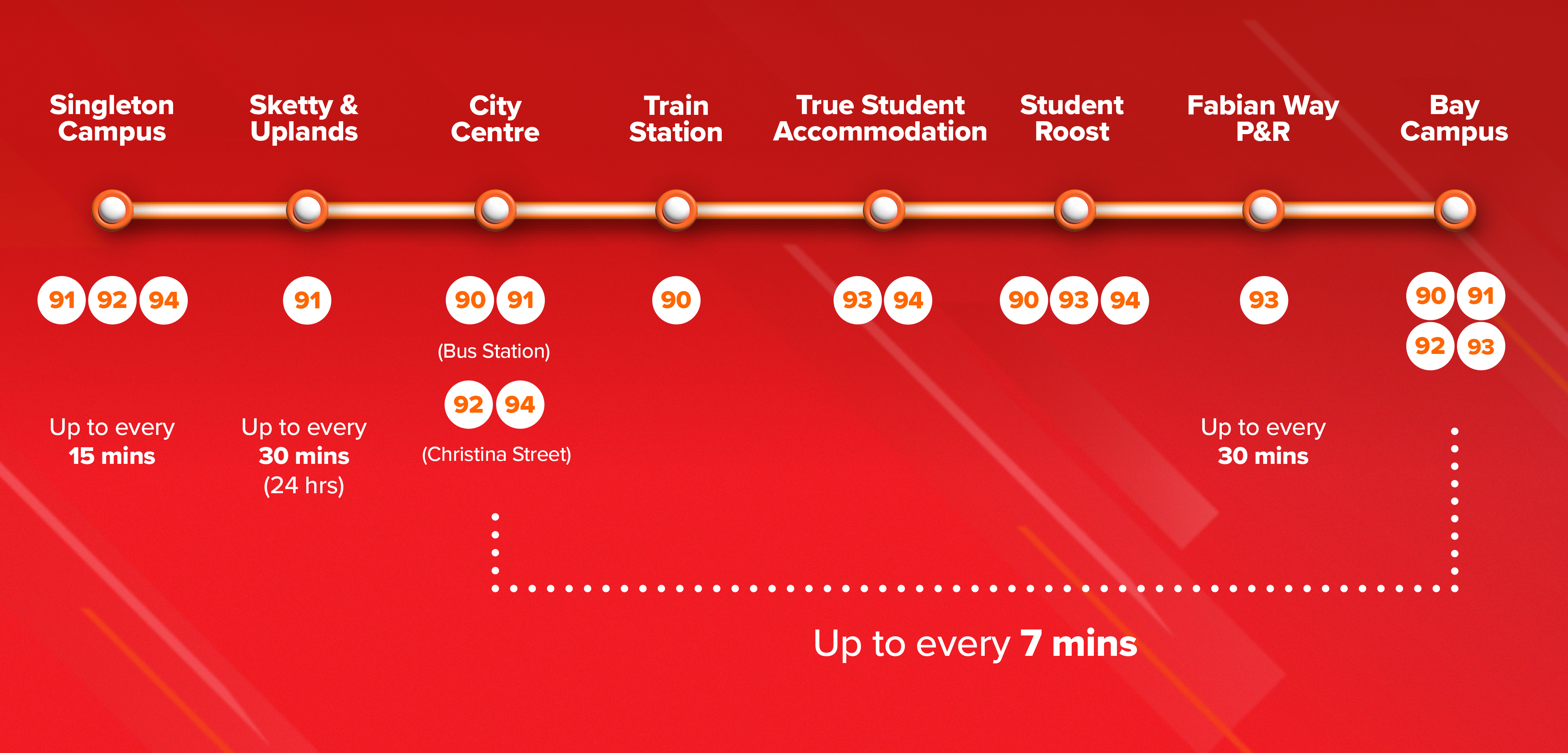 Linking Bay Campus to Swansea Bus Station, Swansea Train Station and Student Roost.